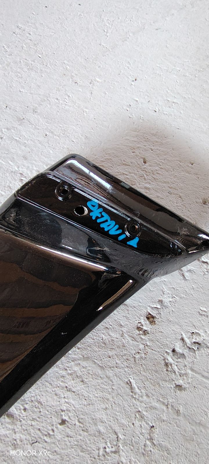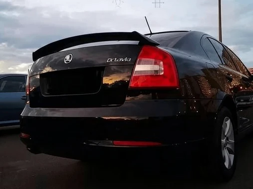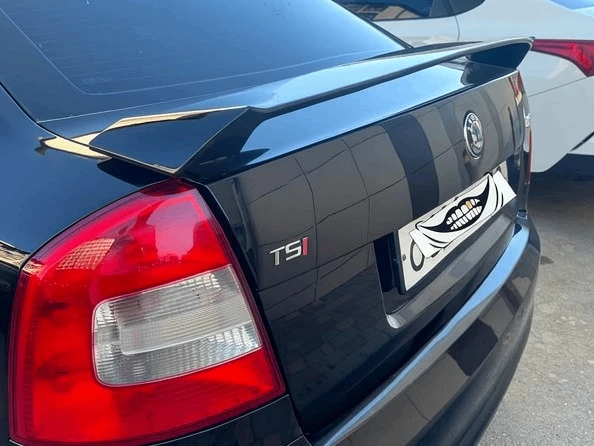 Спойлер Skoda Octavia A5 04-13 стиль RSна крышку багажника в стиле RS для Skoda Octavia A5 дорестайлинг и рестайлинг с 2004 по 2013 года выпуска черный глянец есть дефект, трещина по середине на внутренней части